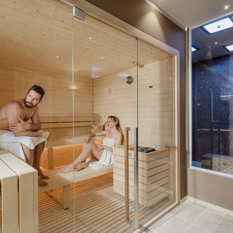 Here, the high temperature (about 80-100 °C) and low humidity induce the skin to perspire, favouring vasodilation and the expulsion of toxins for a purifying and relaxing effect.